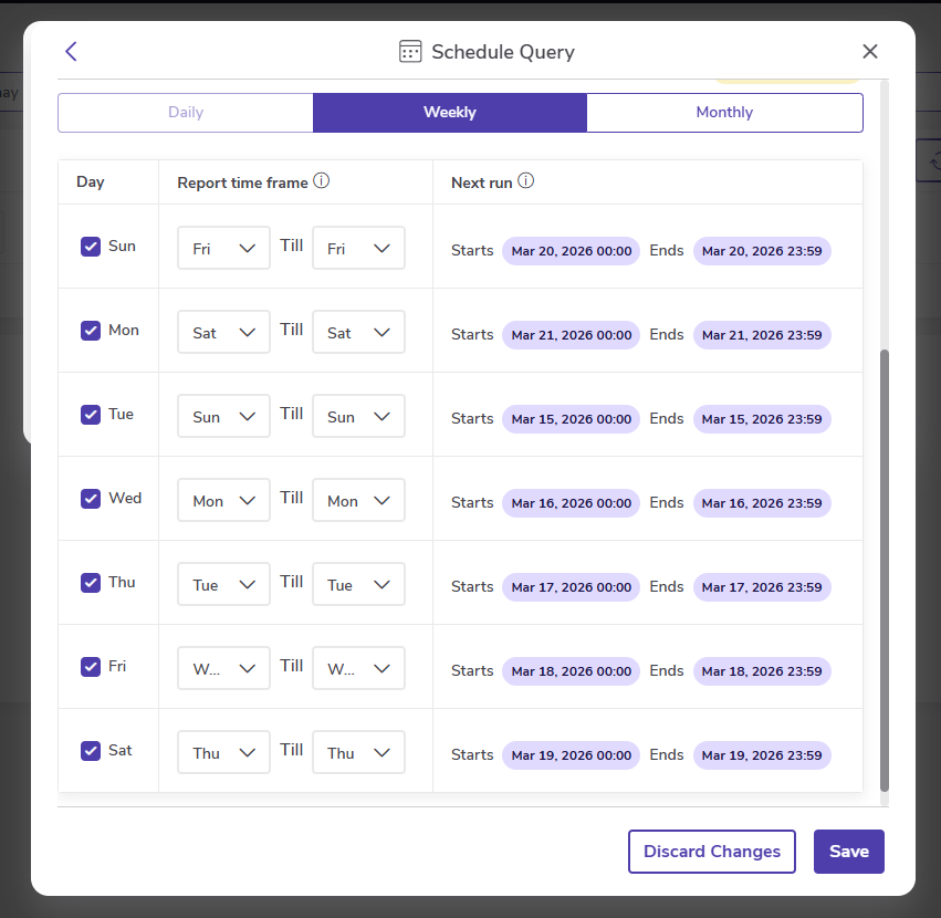 - Merchants can schedule a query or distribution for the financial reports. All financial reports (except the Settlement Summary Report) have limitations of creating daily report based on their business model.