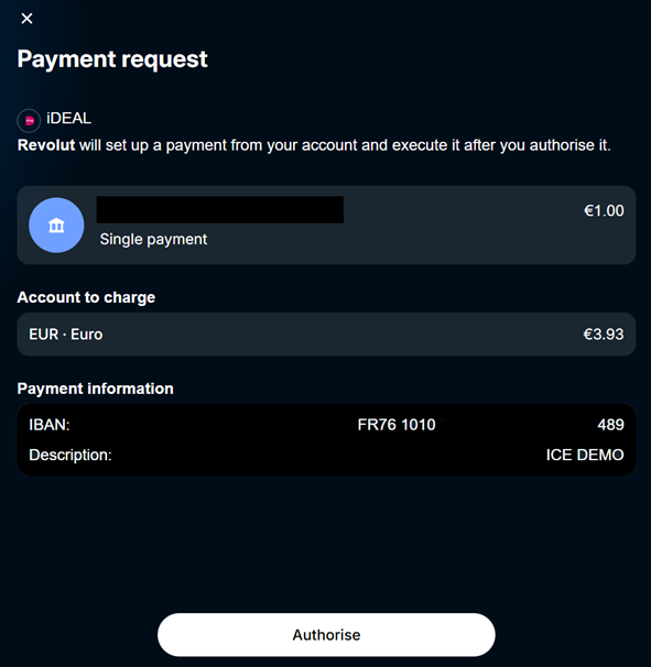 - The payment details are displayed and the user authorizes the payment.