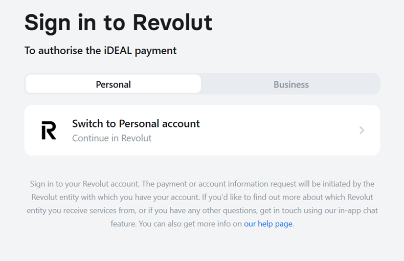 - On the payment page, the user selects the iDEAL payment method.