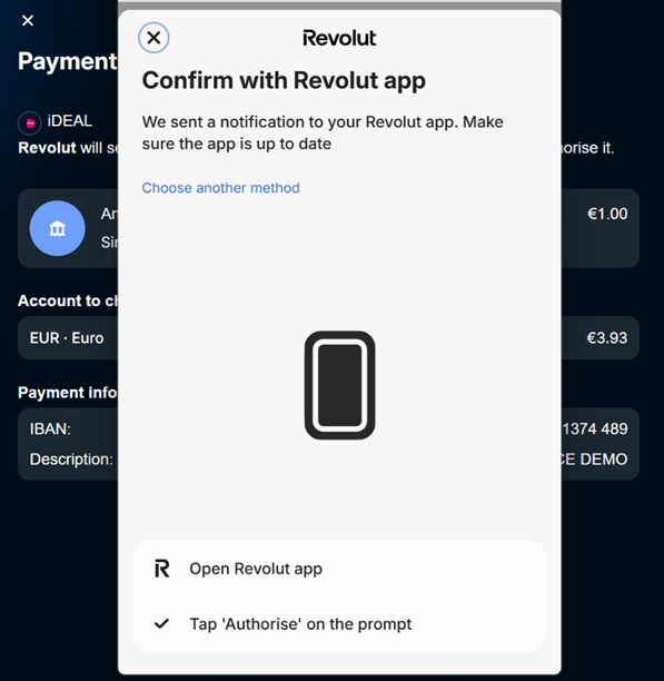 - The user confirms the payment on the mobile app.