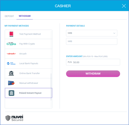 Poland Instant Payout is used in Poland for withdrawals.
